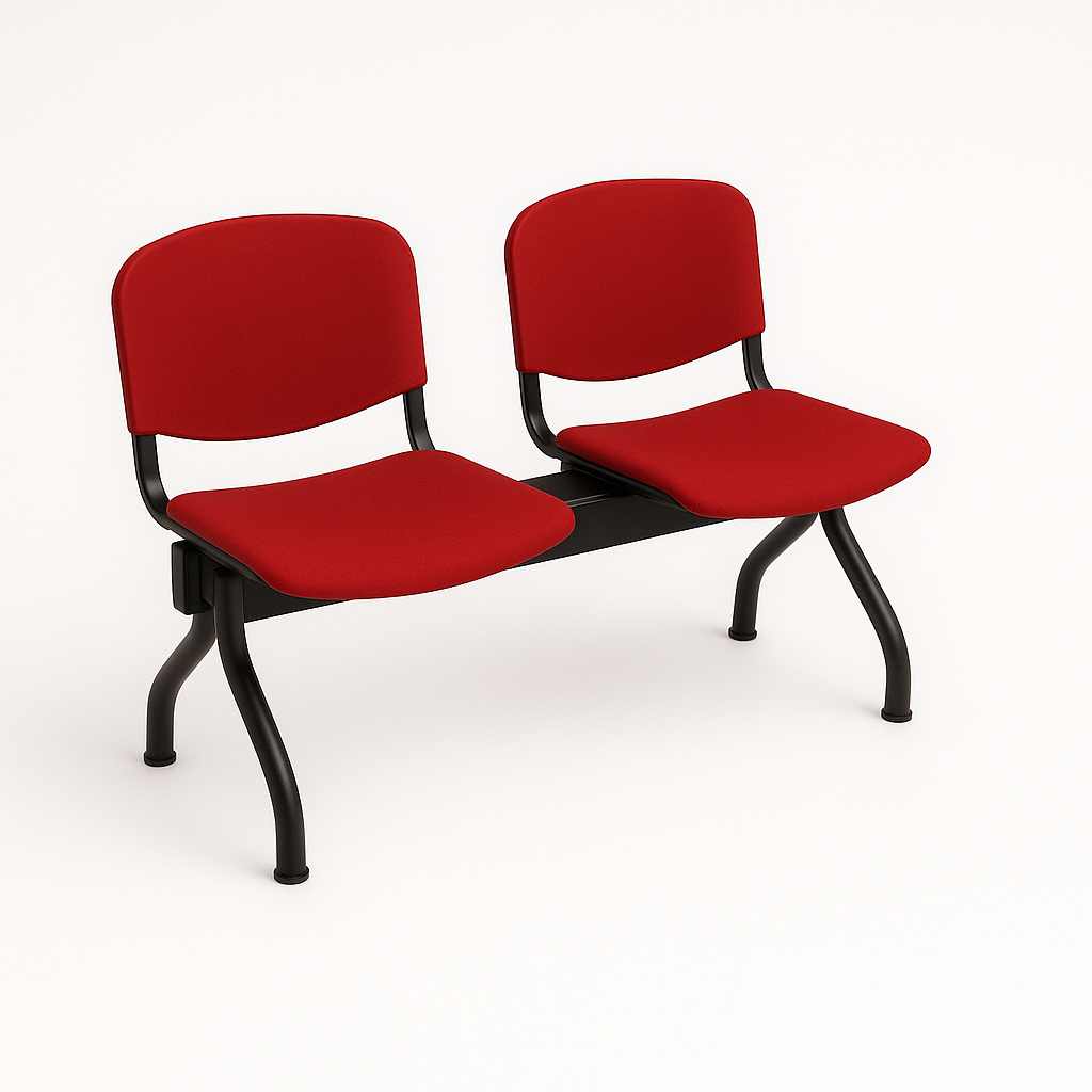 Banco 2 lugares, estrutura em aço acabamento epoxy preto, assento estofado, encosto plás�co (ref. 10.ES.2002)