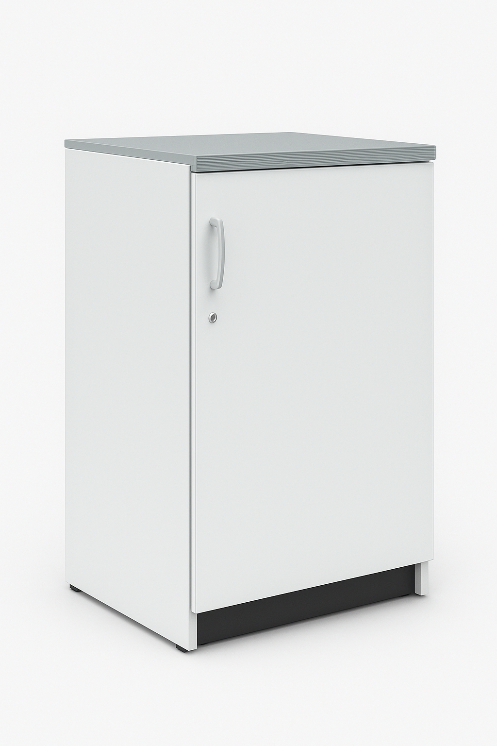 Bloco em melamina c/ rodas, c/ porta p/ bancada, c/ 1 prateleira (ref. 10.MC.7141)