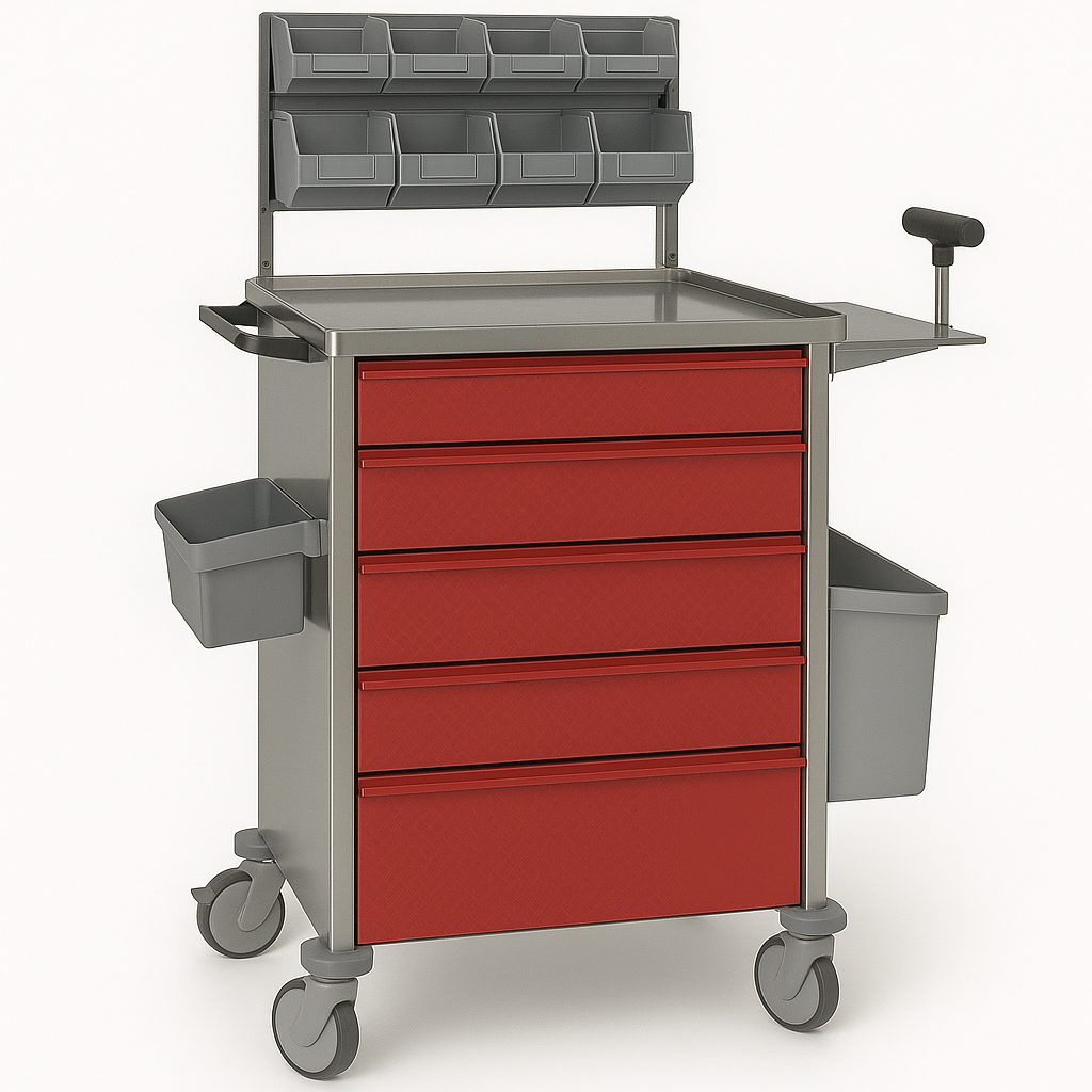 Carro de anestesia, estrutura e frente das gavetas em aço (ref. 10.1589.I.A.2024)