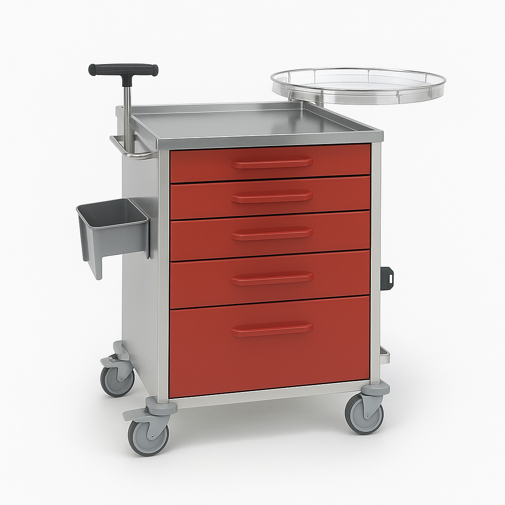 Carro de emergência, estrutura e frente das gavetas em aço (ref. 10.1589.J.A.1753)