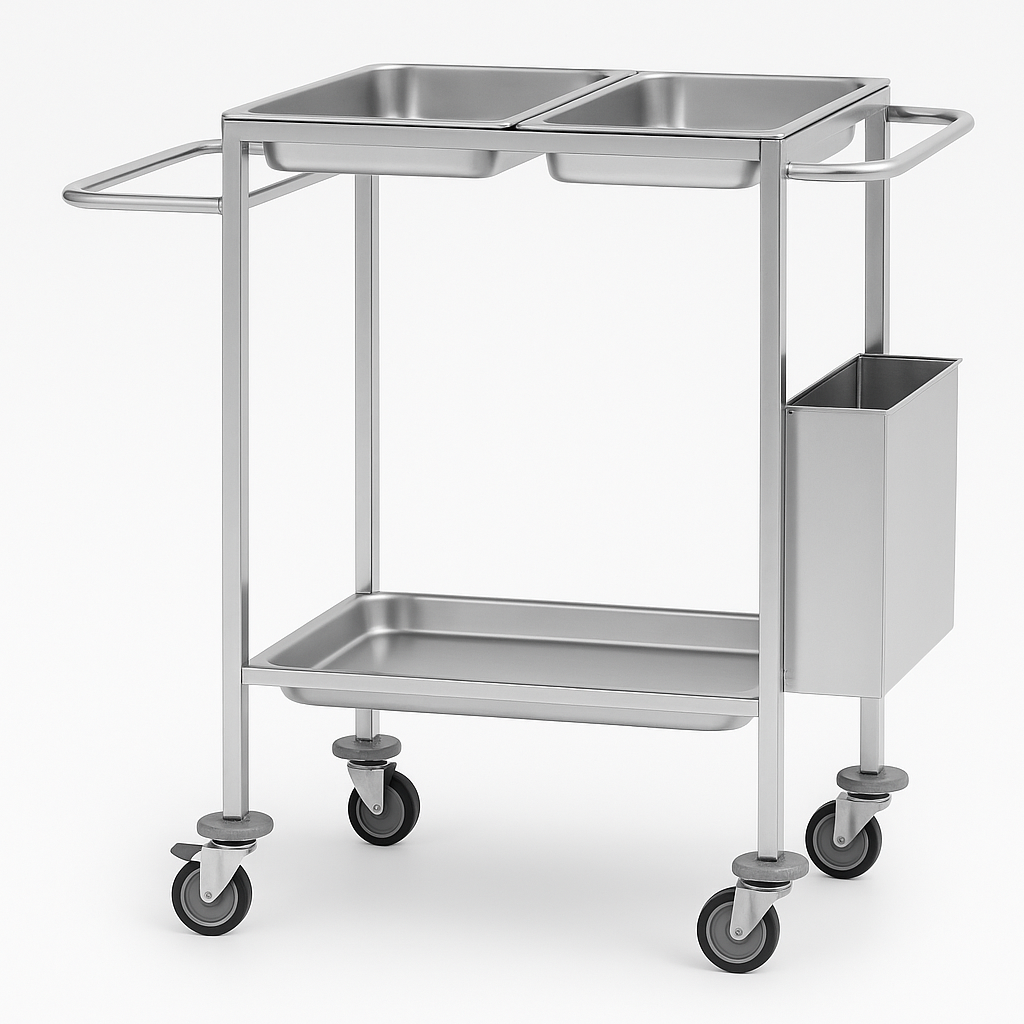 Carro de pensos c/ 2 bandejas e balde do lixo em aço inoxidável (ref. 10.MC.7110)