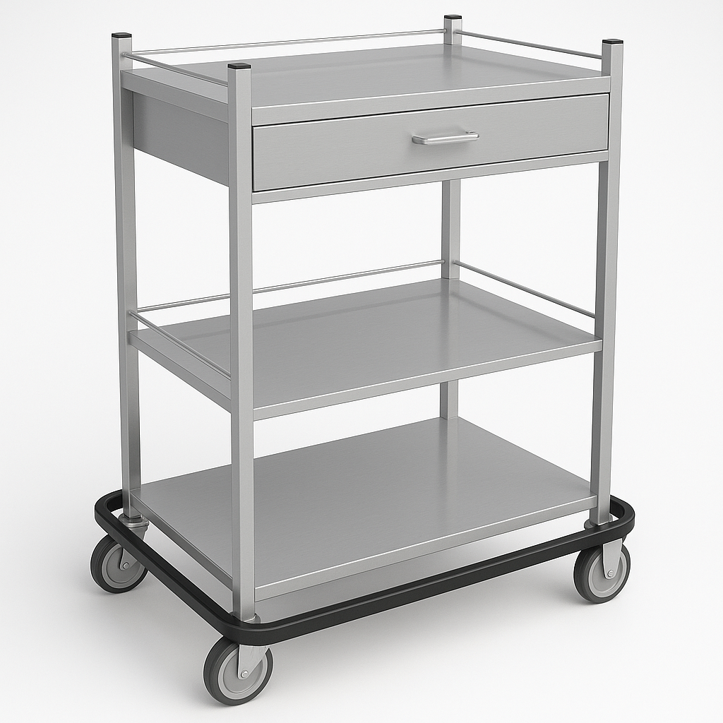 Carro de pensos c/ para-choques, c/ gaveta e 2 prateleiras, em aço inoxidável (ref. 10.1515.A.1802)