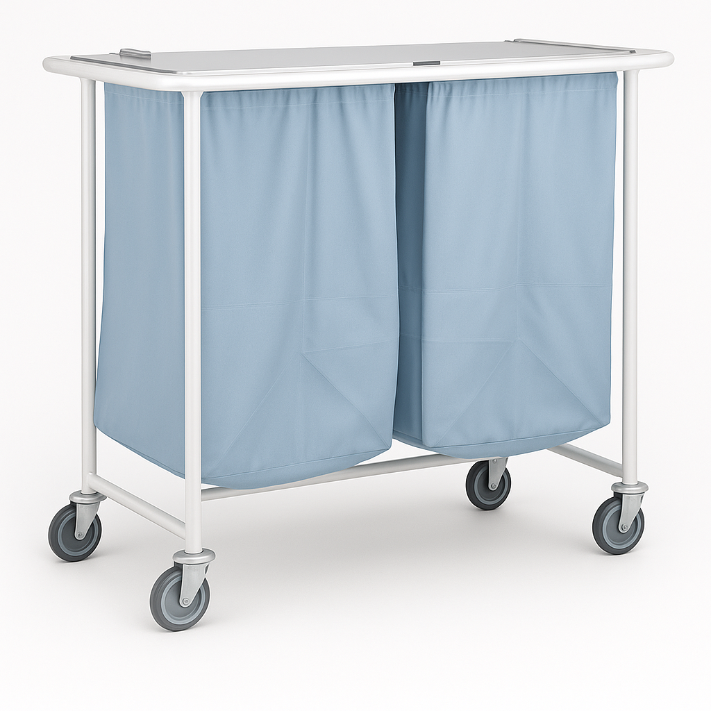 Carro de tranporte de roupa suja, duplo, c/ tampo, em aço inoxidável (ref. 10.CR.1541)