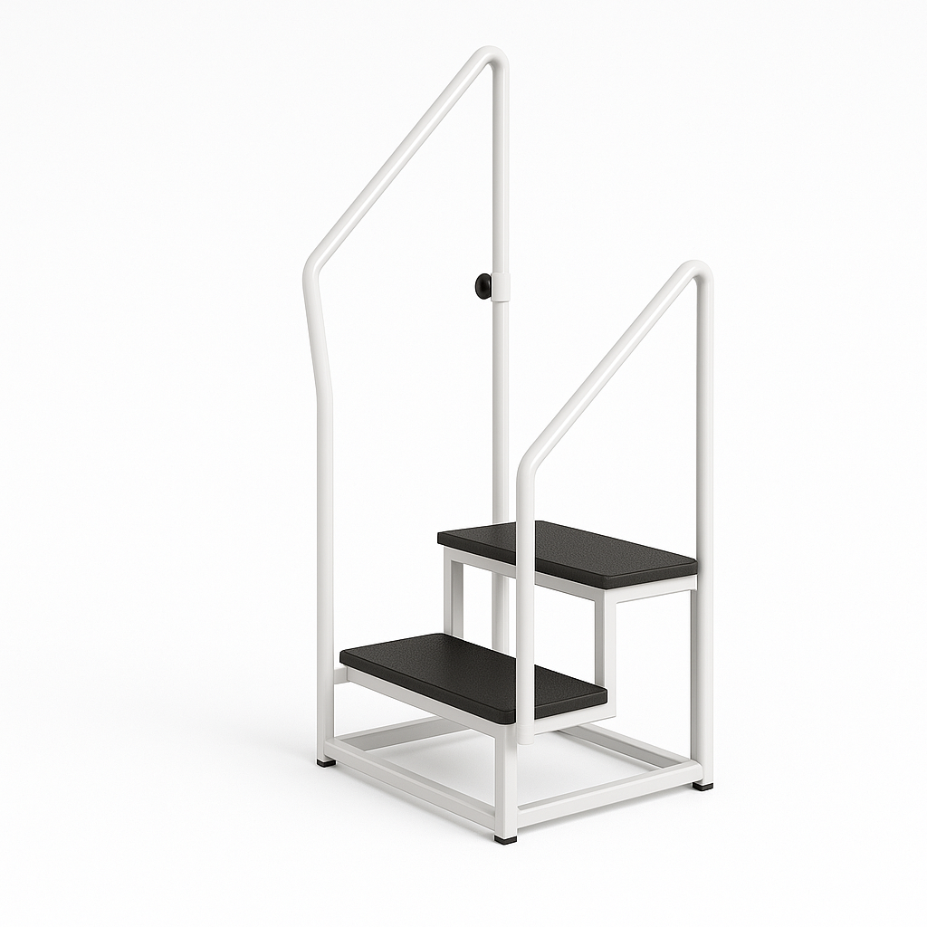 Escada 2 degraus, estrutura em aço, acabamento epoxy (ref. 10.FI.5001)