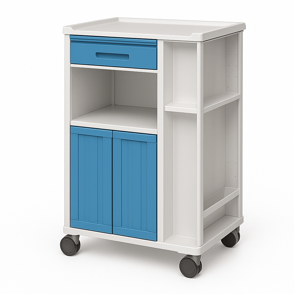 Características: , abertura 2 lados e suporte garrafa. estrutura em aço c/ acabamento epoxy+portas e gavetas em fenólico+puxadores em aço inoxidavel - 385x530x870mm
