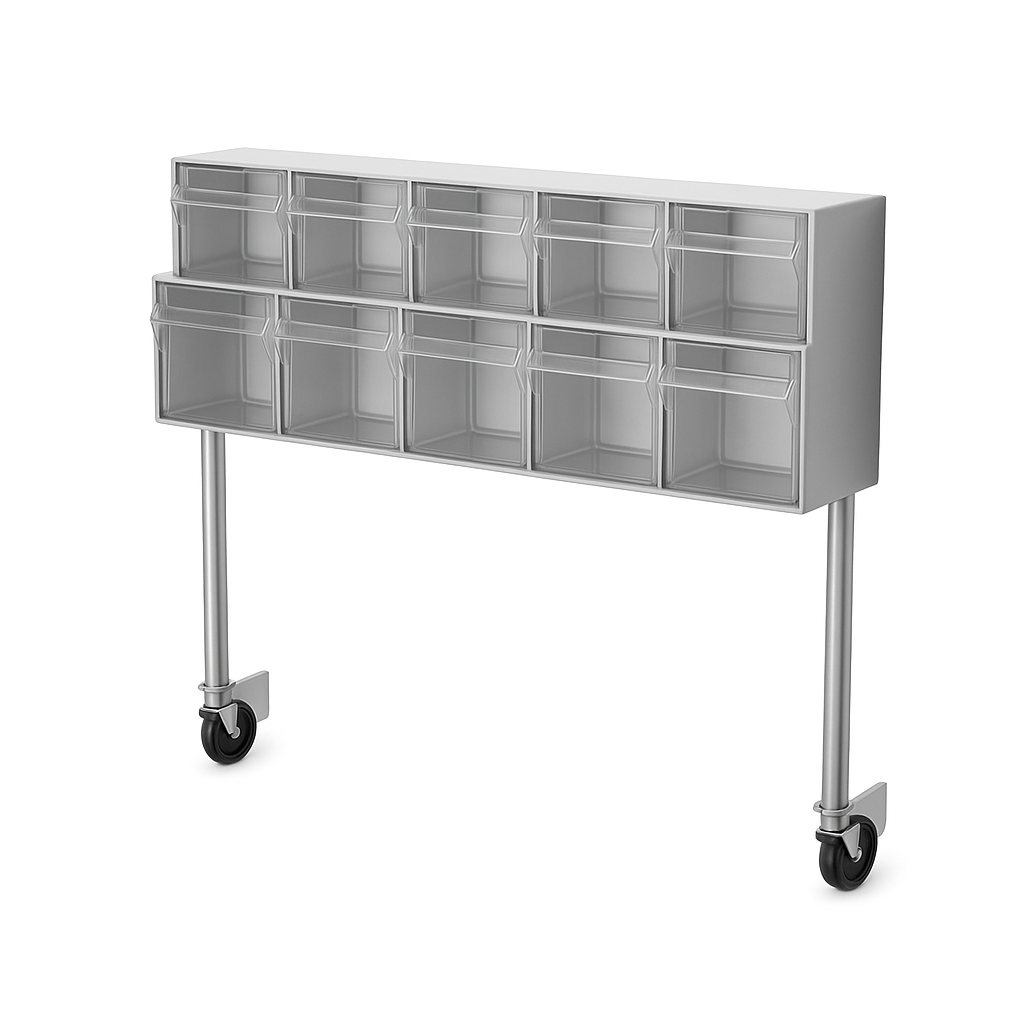 Suporte em inox, contentores basculantes (ref. 10.CR.1589.R) /para carro 10.cr.1589.